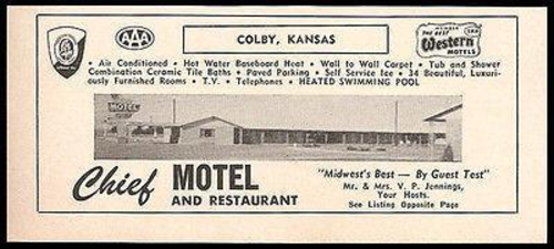 Chief Motel Ad Colby Kansas Ac Heated Pool Tv 1964 Roadside Photo Ad Travel Ebay